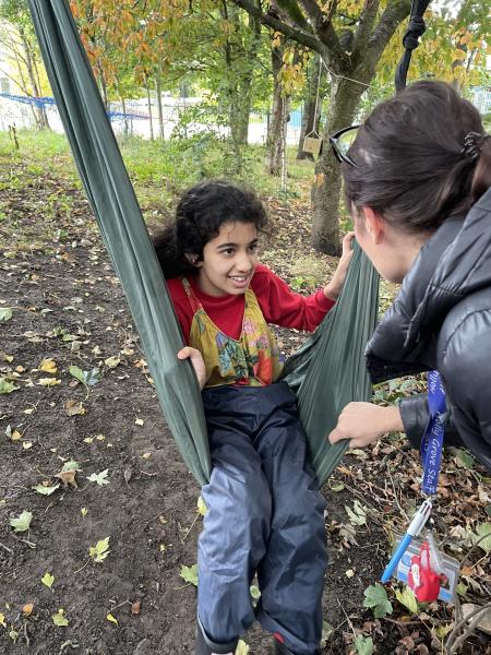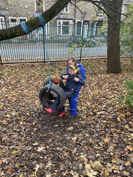 This term Julie’s Class are exploring the Forest School every Monday afternoon. This week we enjoyed exploring the tree swings and hammock. They all loved being outside. They enjoyed exploring the natural environment, especially throwing leaves in the air and watching them float to the ground.