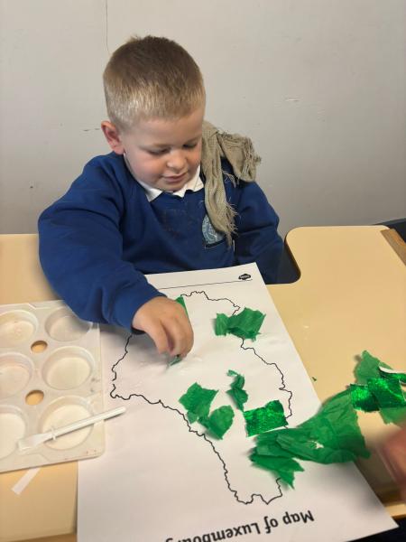 In Samantha's Class this week we have enjoyed learning all about Luxembourg this week. We have been decorating flags, learning about different landmarks and the national bird of Luxembourg the Goldcrest. We even took a trip in the immersive room to the airport, on an aeroplane and enjoyed cotton candy, a ride on the carousel and hook a duck at the Luxembourger Schueberfouer.