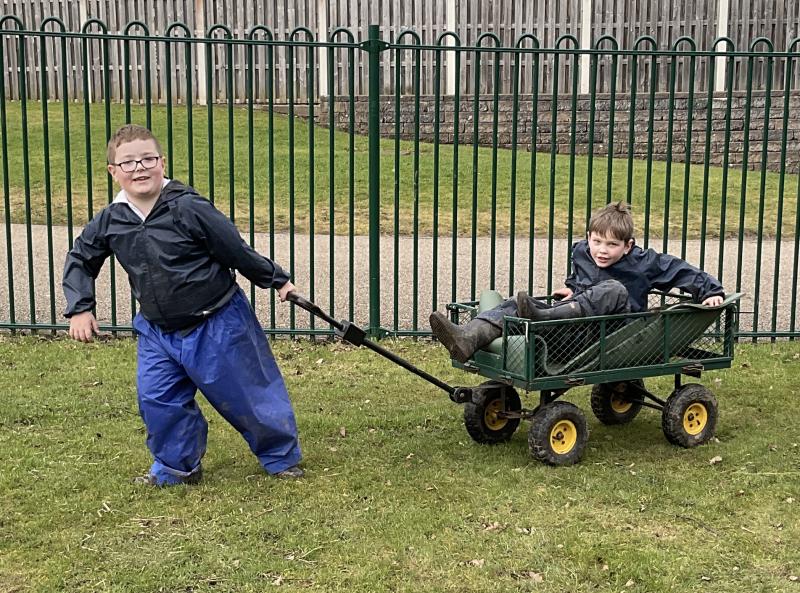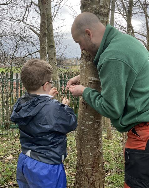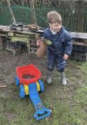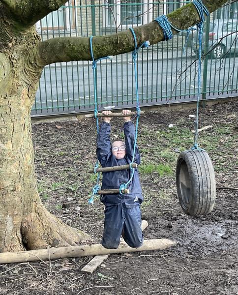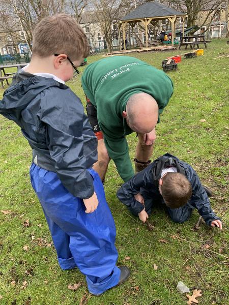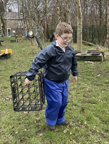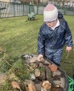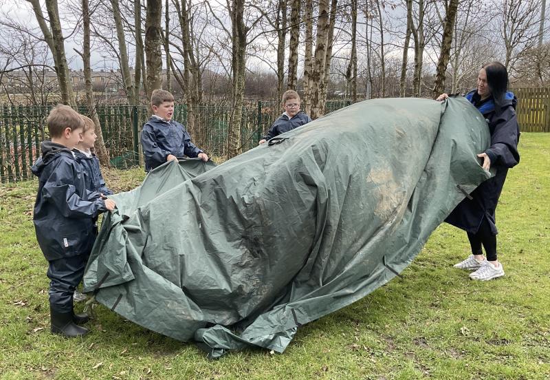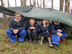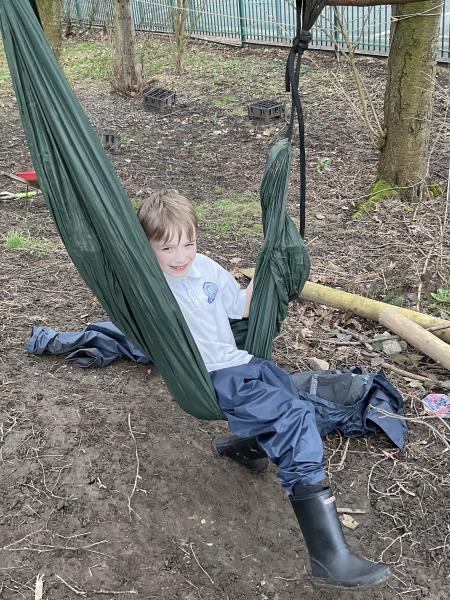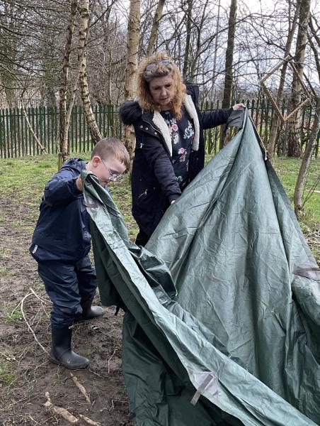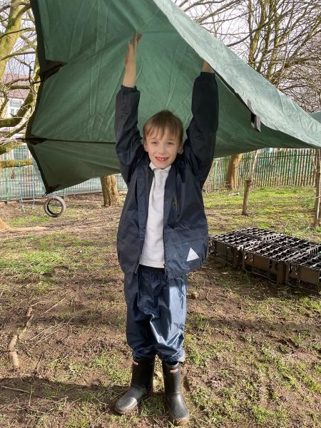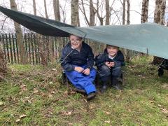 On Wednesdays this term we are using the Forest School, which is still very muddy at the moment but we had lots of fun making dens. Using a sheet for the roof and some rope tied to trees we managed to make a really good shelter for the children to sit under.