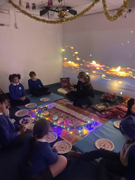 What a fantastic and busy week we’ve had celebrating Diwali! 🎆 The children have truly immersed themselves in the festivities, exploring the sights, sounds, and sparkle of this special festival of light. ✨ We began our celebrations by enjoying a magical sensory story of The Best Diwali Ever in the immersive room 🎧—the children loved listening to the story come to life all around them! Afterwards, they showed off their creativity by designing their very own dazzling diva lamps 💻🪔 on the computer, using bright colours and beautiful patterns. To finish off our celebrations, we made amazing glow-in-the-dark firework paintings 🎨💥 that lit up the classroom with excitement and colour. The children had so much fun learning about Diwali and sharing their wonderful creations with friends. 💖