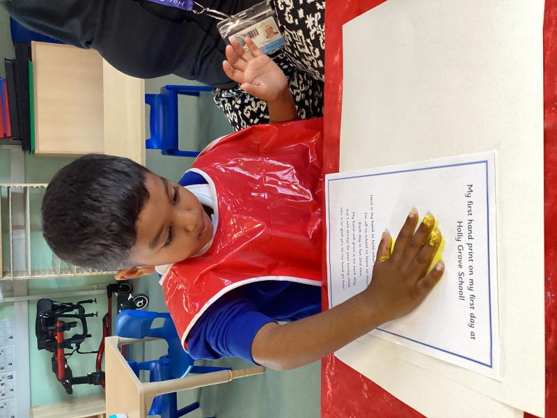 As a special keepsake to remember their first day at Holly Grove School, the children also created beautiful handprint paintings. These delightful creations will serve as a lasting reminder of the beginning of their school journey.