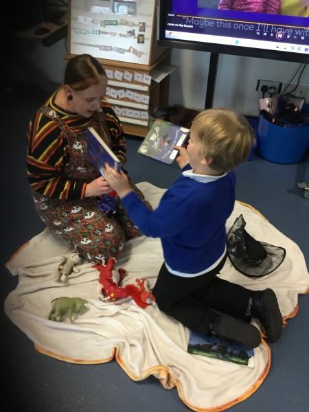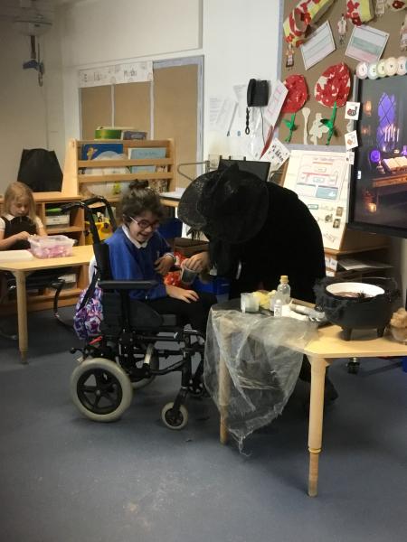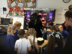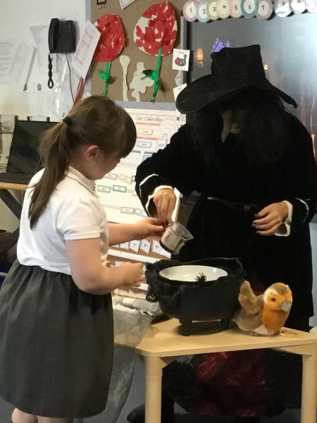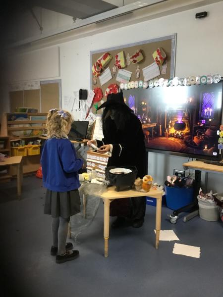 During our Stay and Play session, the children enjoyed making broomsticks and witch hat biscuits inspired by the story, along with lots of other exciting activities. We even had a special visit from the witch herself, who helped the class create a spooky magic potion. It was a very fun afternoon!
