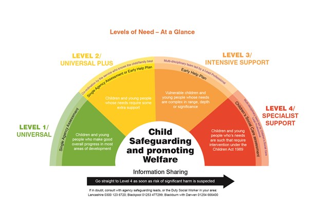 Our team also has links to the Children and Family Wellbeing Service and access to a Community Senior Family Support Worker (CSFSW.) If it felt a family needs may require level 3 (intensive support) or level 4 (specialist support) then a case consultation would be held with the CSFSW and an ‘Early Help Plan’ or referral into social care may be made on your behalf.